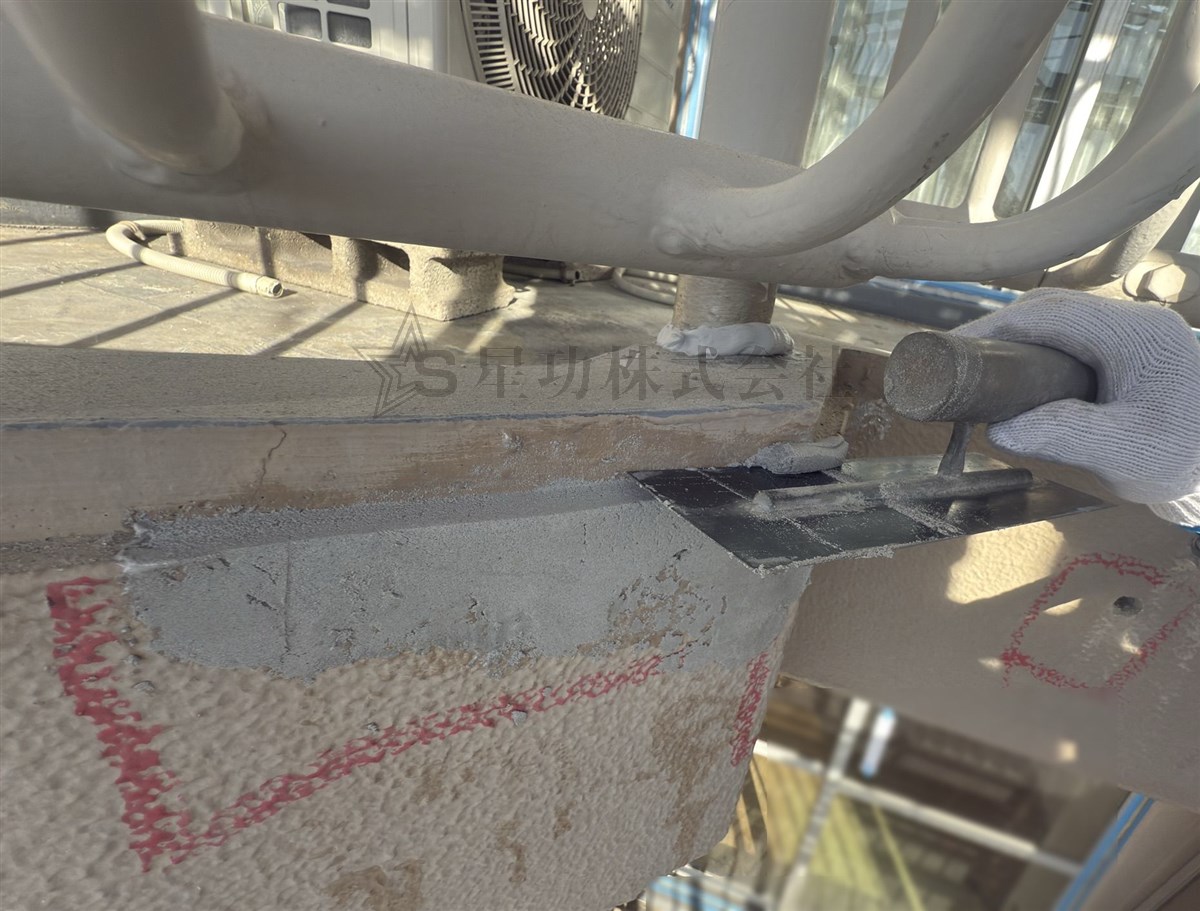 また爆裂によってむき出しになってしまった鉄骨部分も錆びやすい状態になってしまいます。