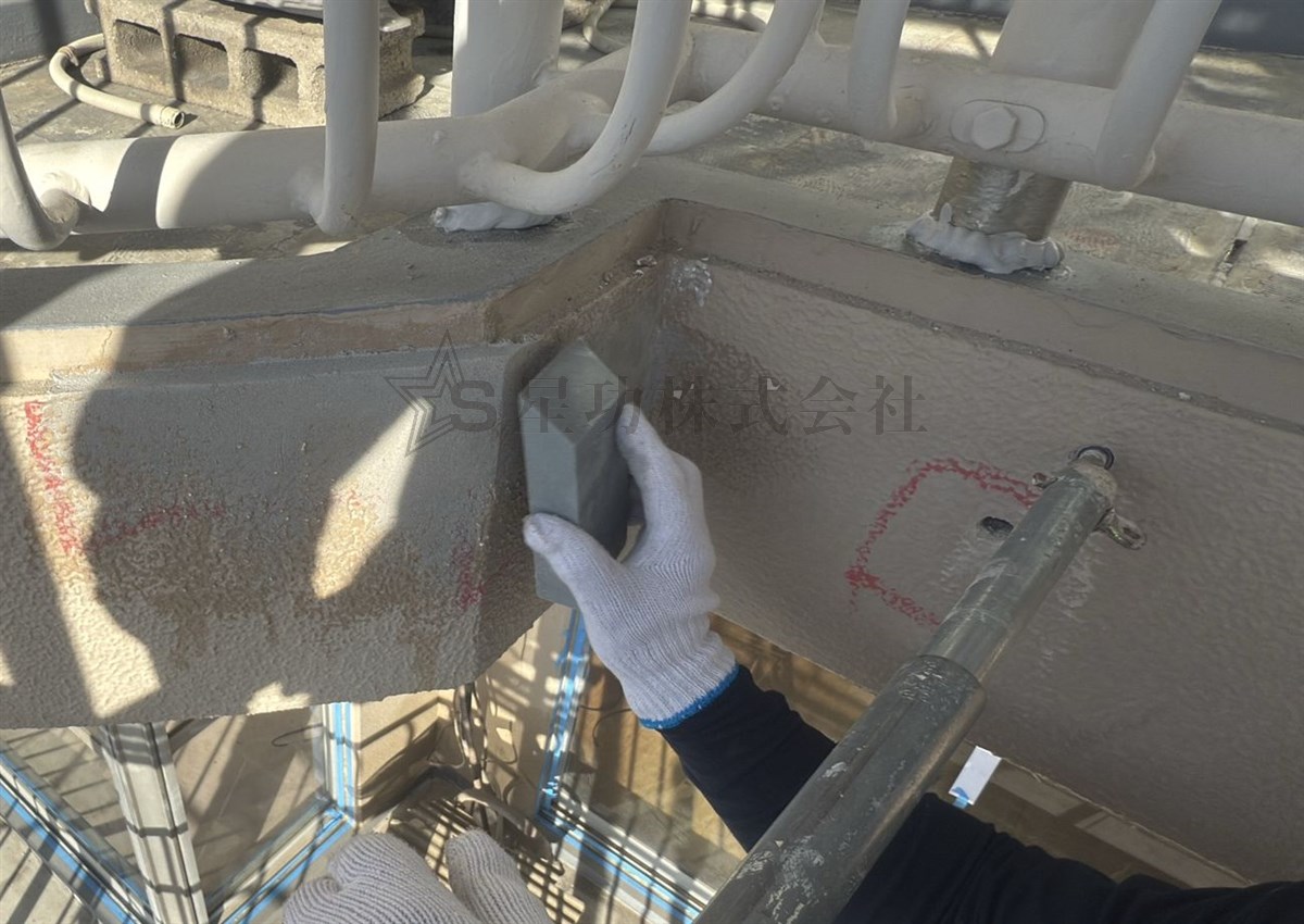 また爆裂によってむき出しになってしまった鉄骨部分も錆びやすい状態になってしまいます。