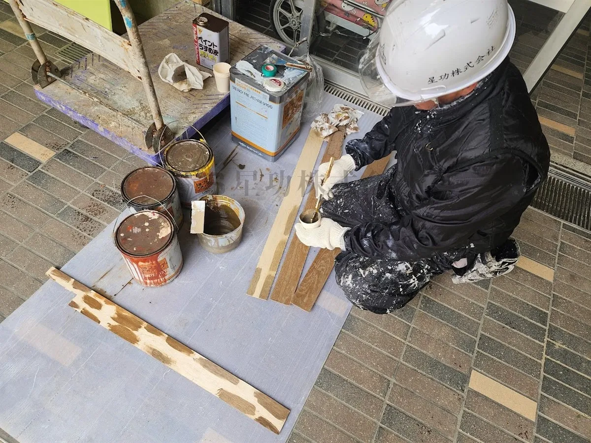 取外した板材の色に近い色に調色していきます