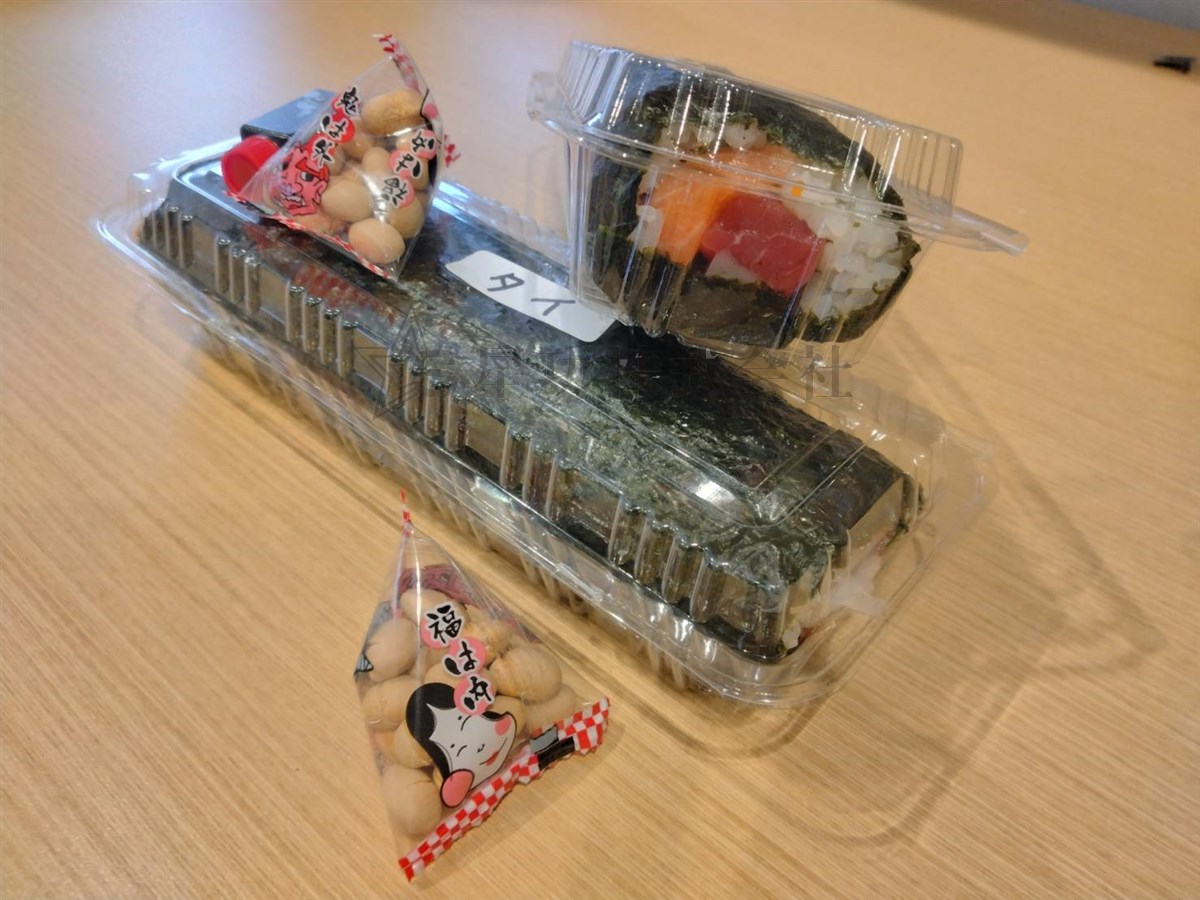 弊社では昨年度に引き続き、社長のご厚意で恵方巻きをご用意して頂きました!