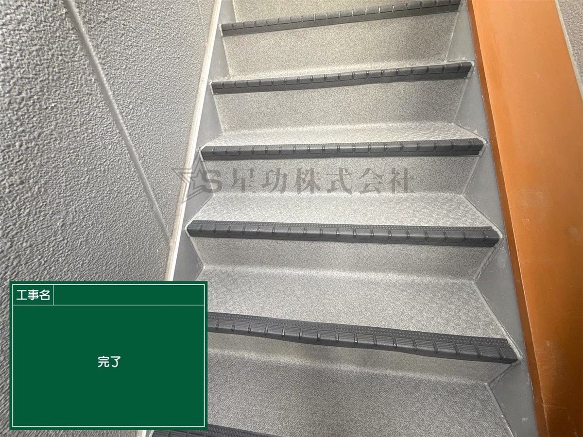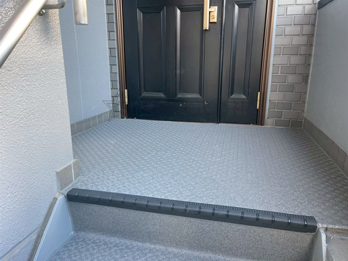 玄関前部分・階段全面部分のシート貼りが完了しました!