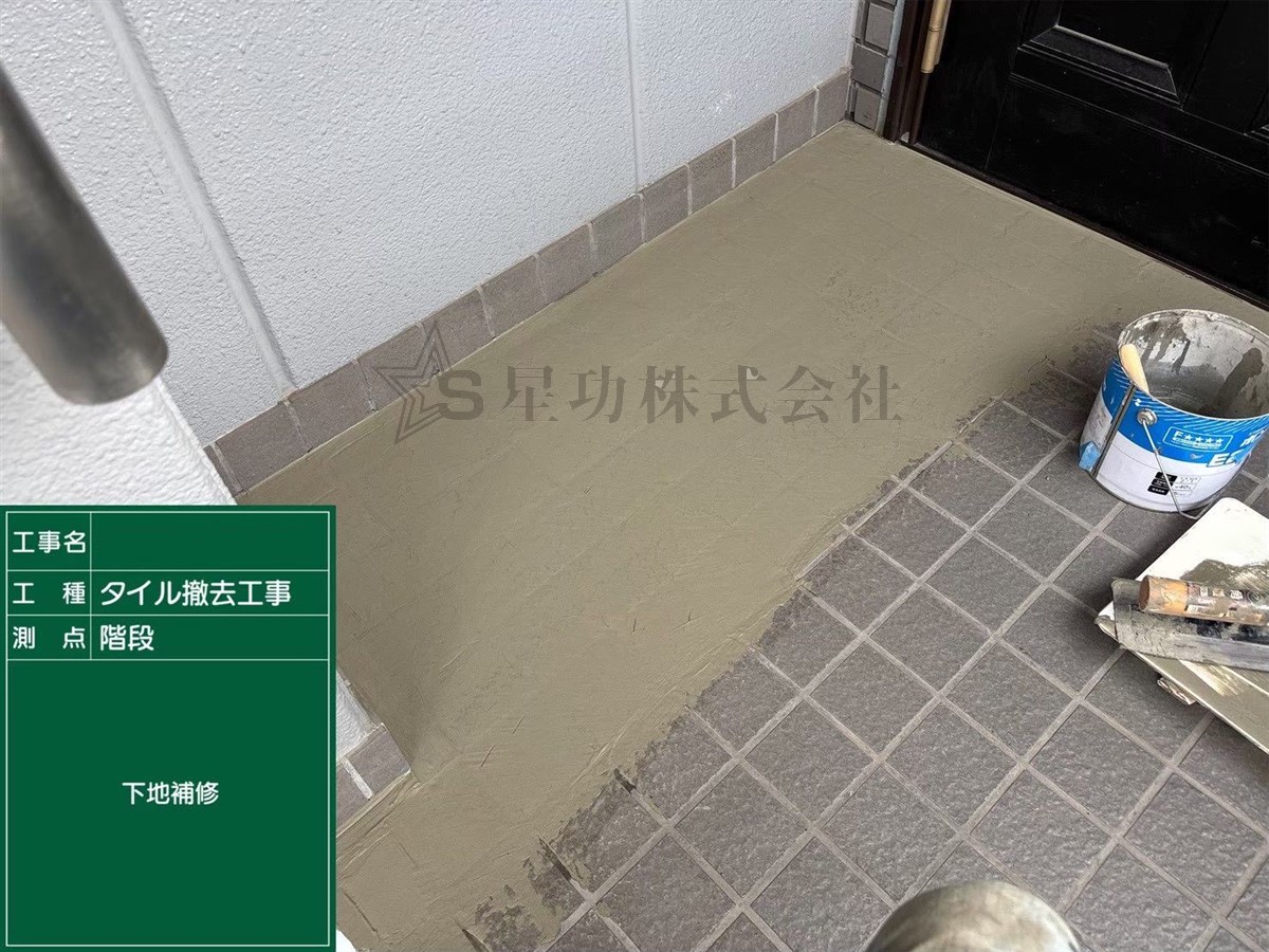 1階から玄関部分に繋がる階段のタイルの剥がれ・割れが目立っているので