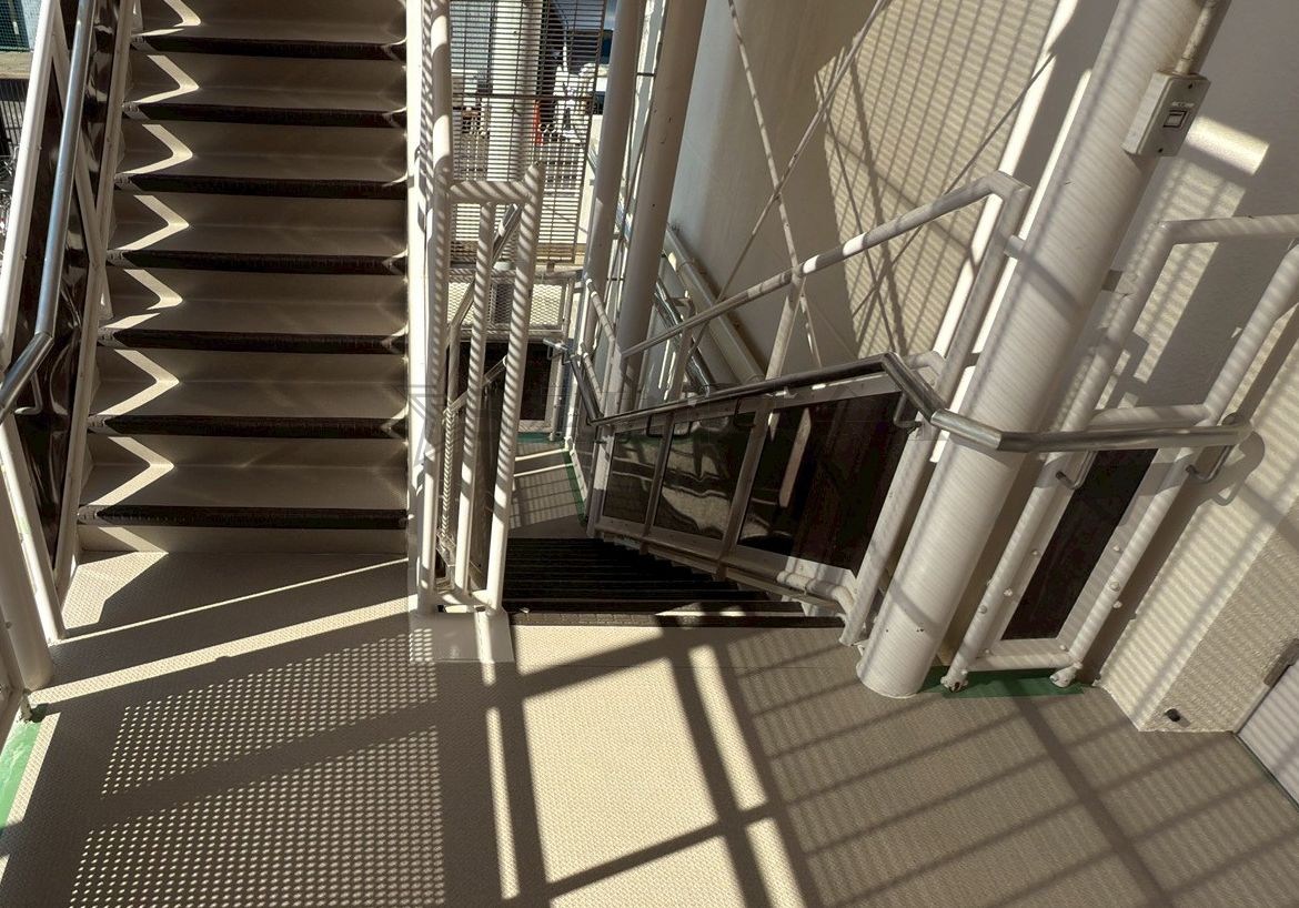 マンションの共用廊下や階段、ベランダなどに使用される耐候性・防滑性に優れたビニル床シート(階段用床材)