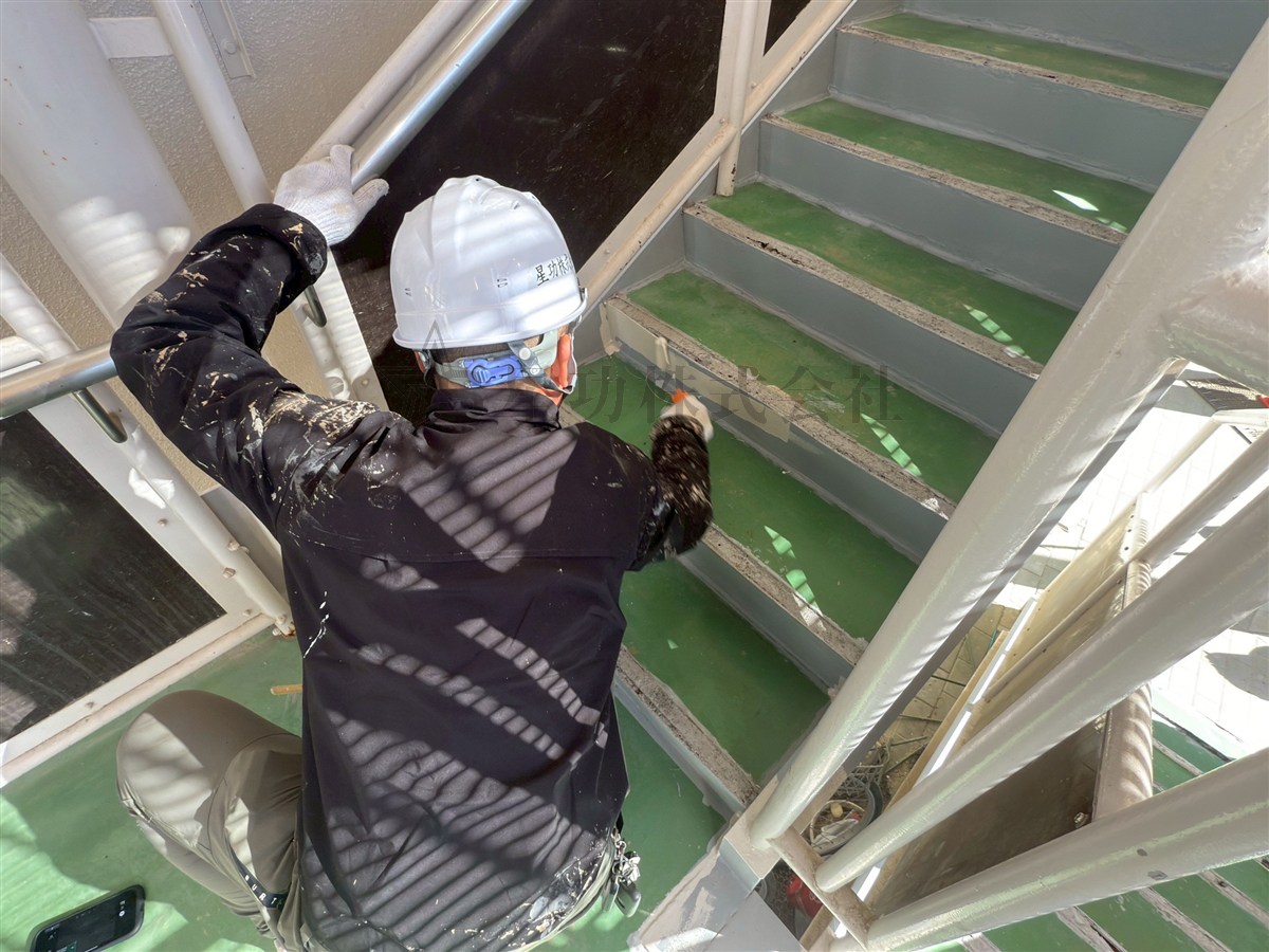大阪市内の中学校様より『非常階段の劣化による剥離箇所を補修し塗装してほしい』とご依頼を頂きました!
