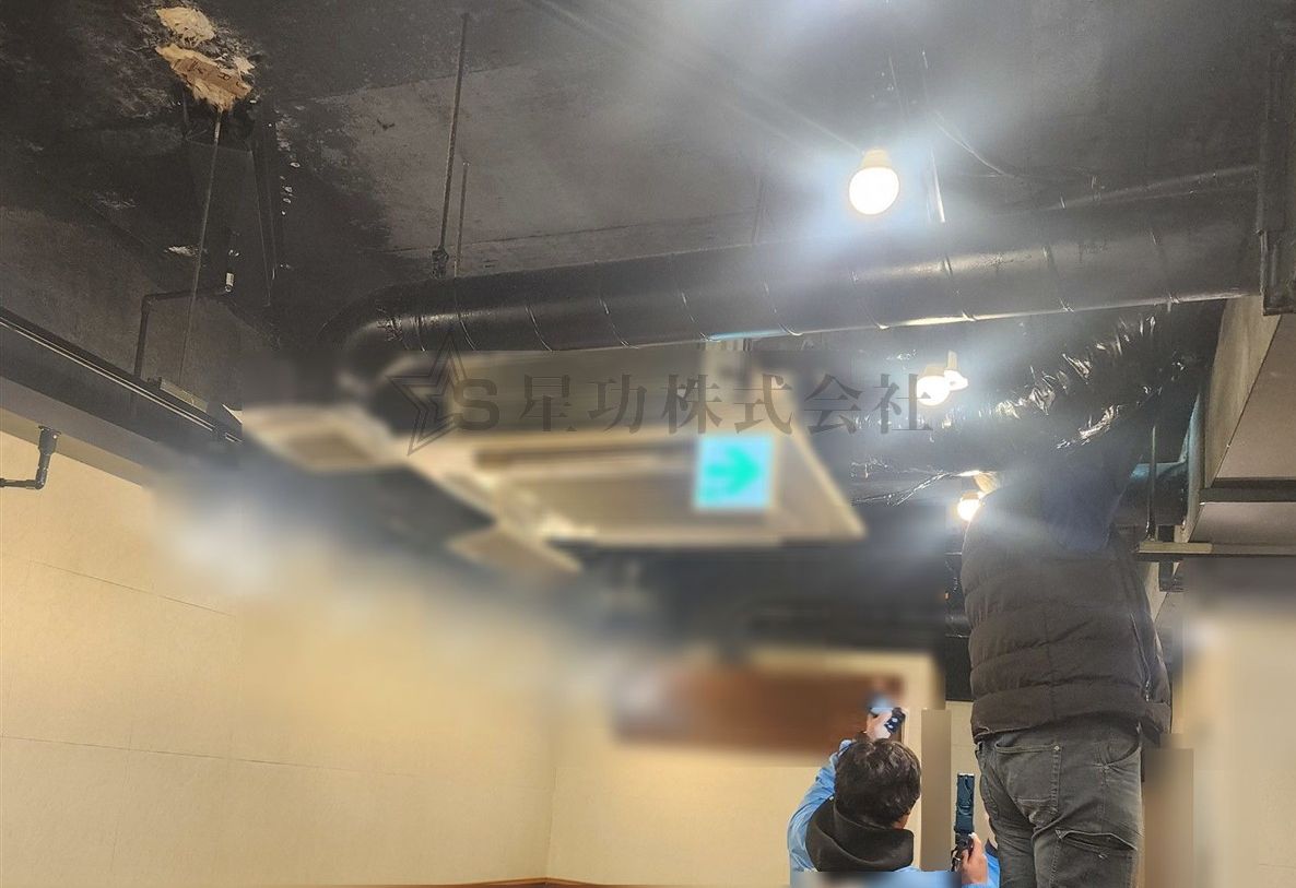 天井のシミや壁の湿りなどがあり、すでに営業に影響が出始めている状態でした。
