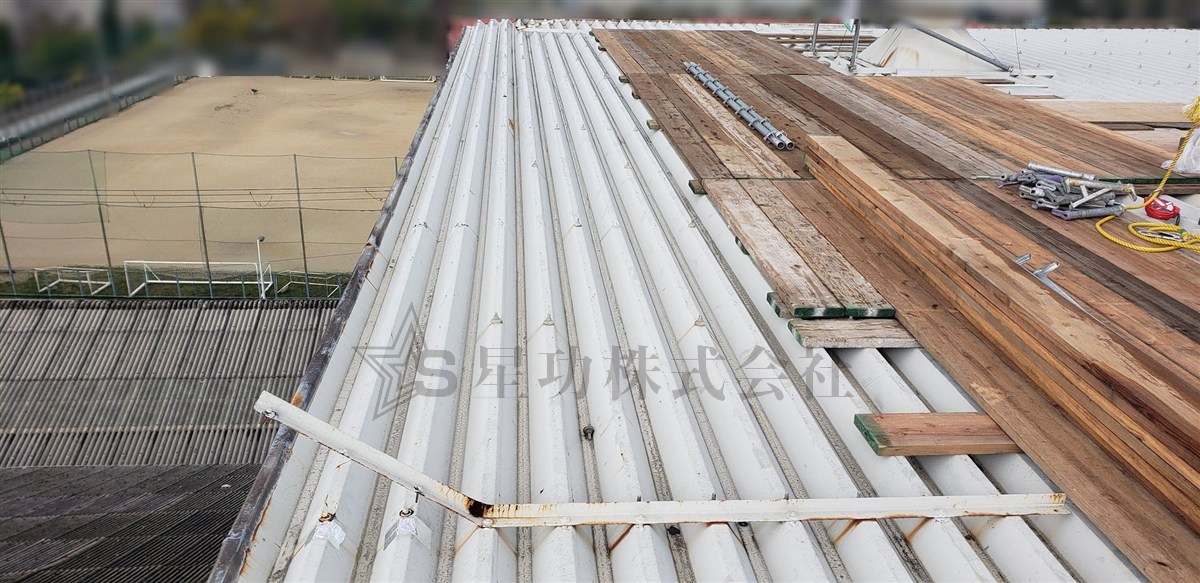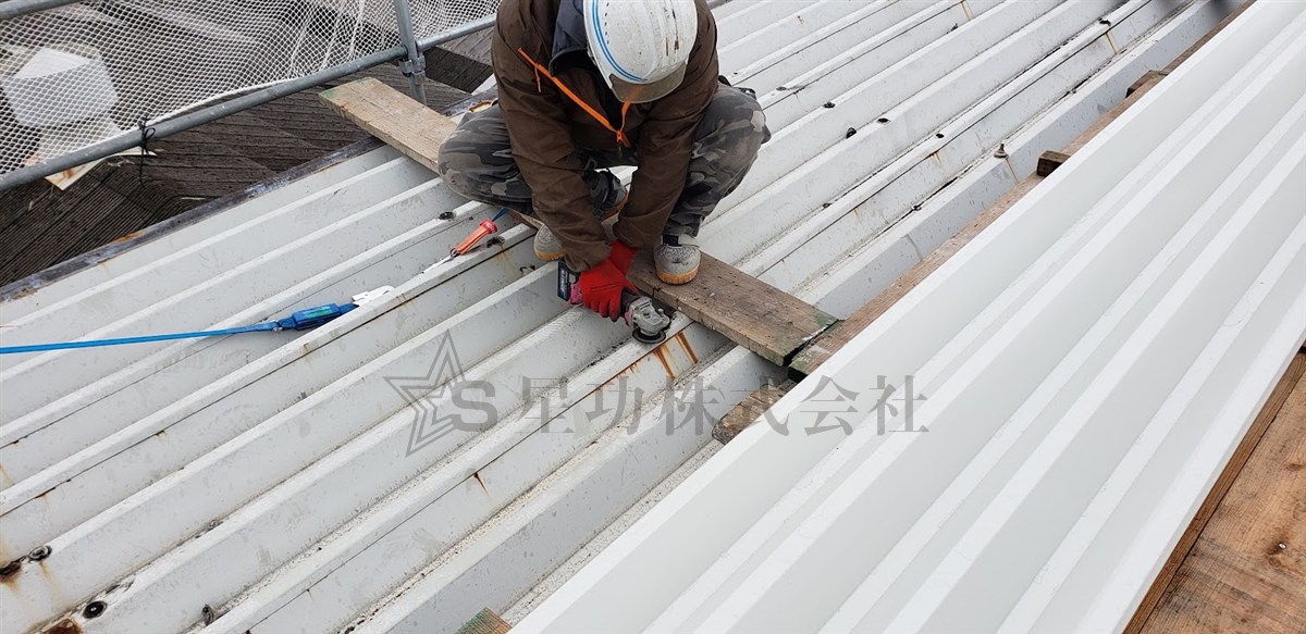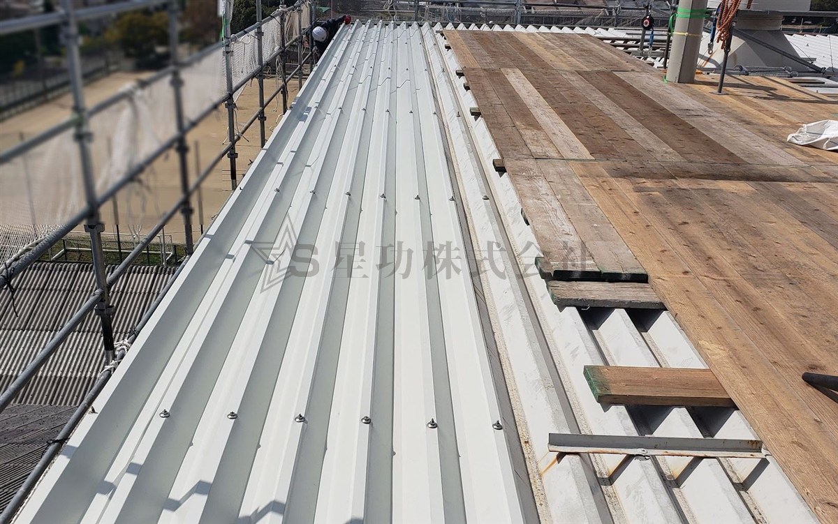 今回の工事では、老朽化した折板屋根の一部を撤去し、新しい屋根材へ交換しました。