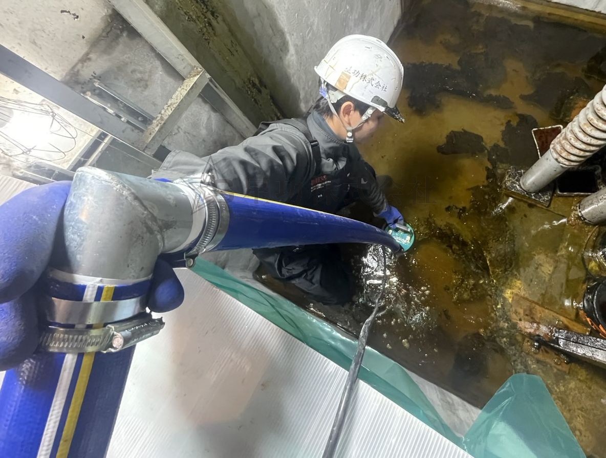 ピット内に溜まった水を排出し、点検ができる状態に戻す作業です。