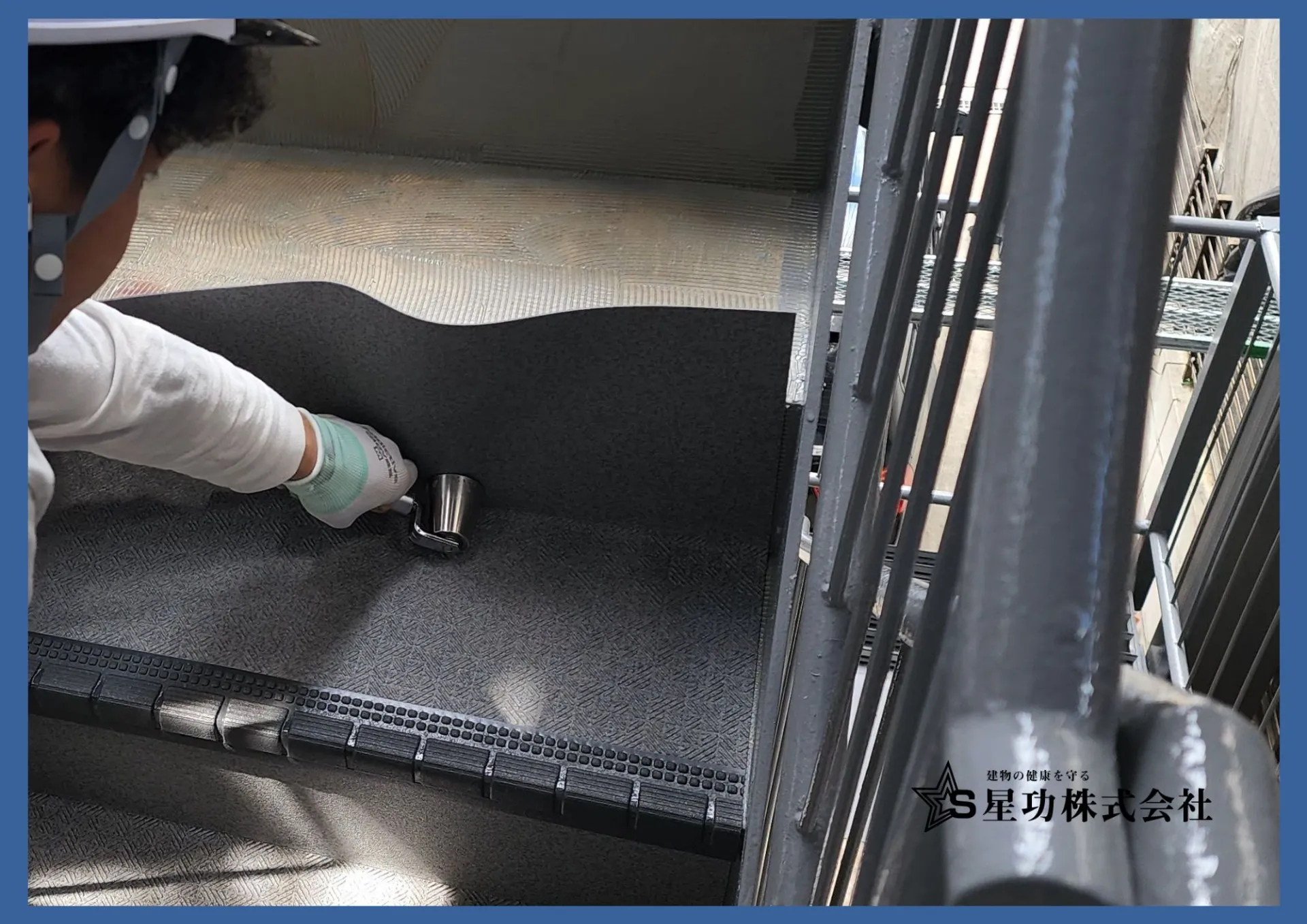 大規模修繕工事において、廊下やバルコニーなど共用部の床に設置される長尺塩化ビニルシートは、定期的な点検が欠かせません。特に長尺シートは、表面の摩耗や色褪せ、剥がれ、浮き、ひび割れ、シートの継ぎ目の開きといった劣化症状が現れやすい建材です。これらの症状を早期に発見することで、修繕費用の増大や安全面でのリスクを未然に防ぐことが可能になります。