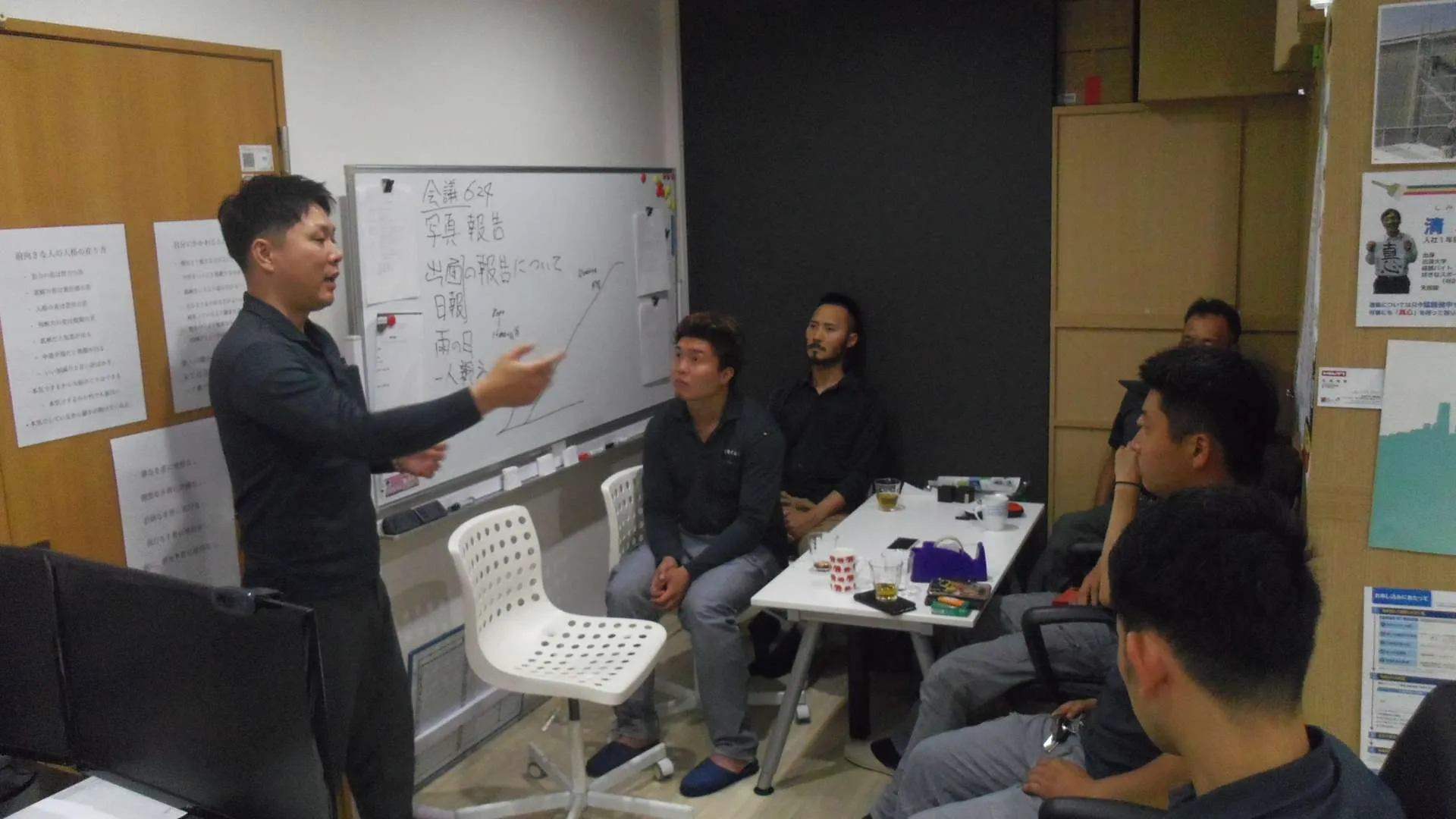 誰が社長が分からないくらい 腕組みをして貫禄のある男がひとり...笑
